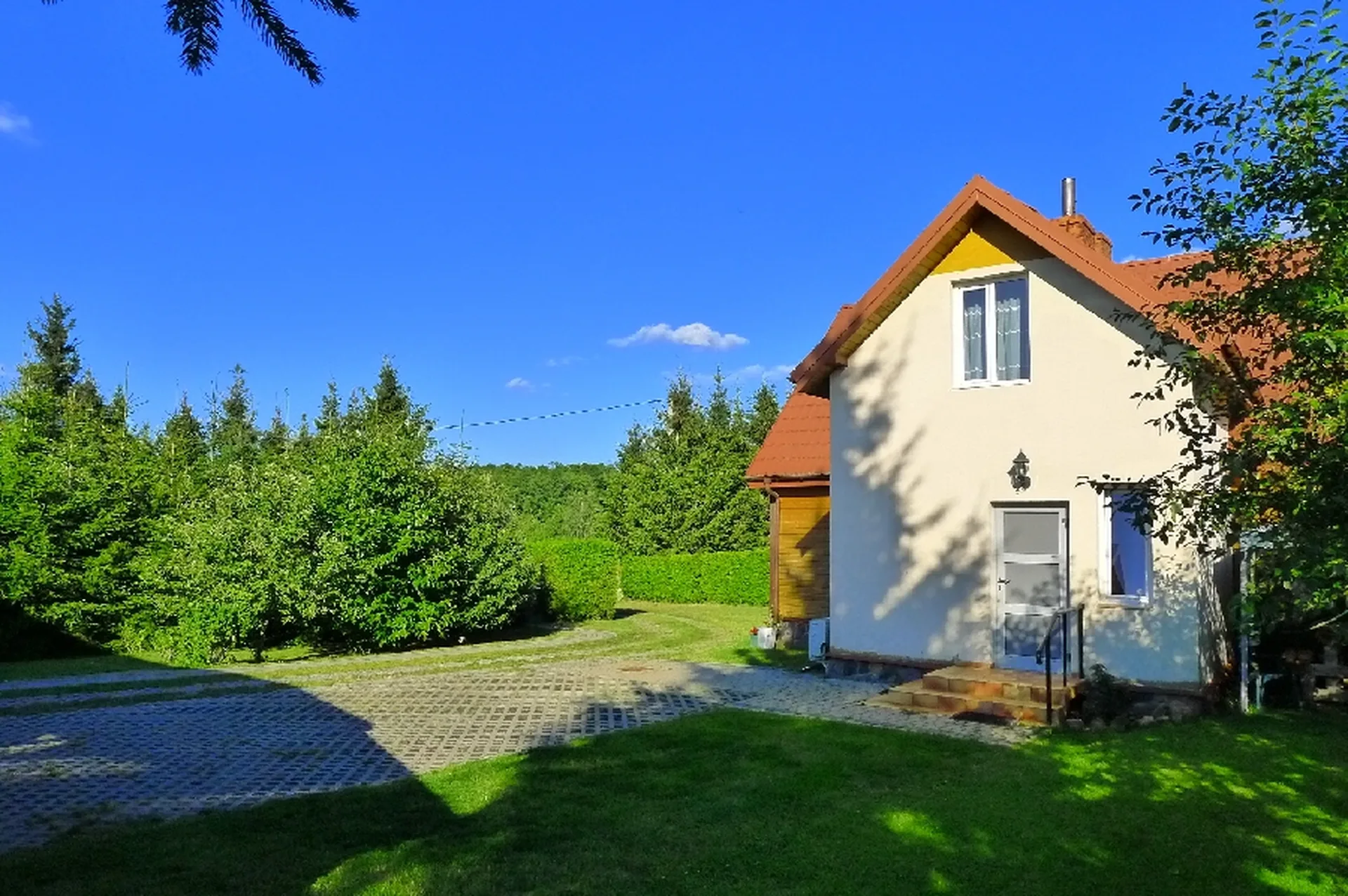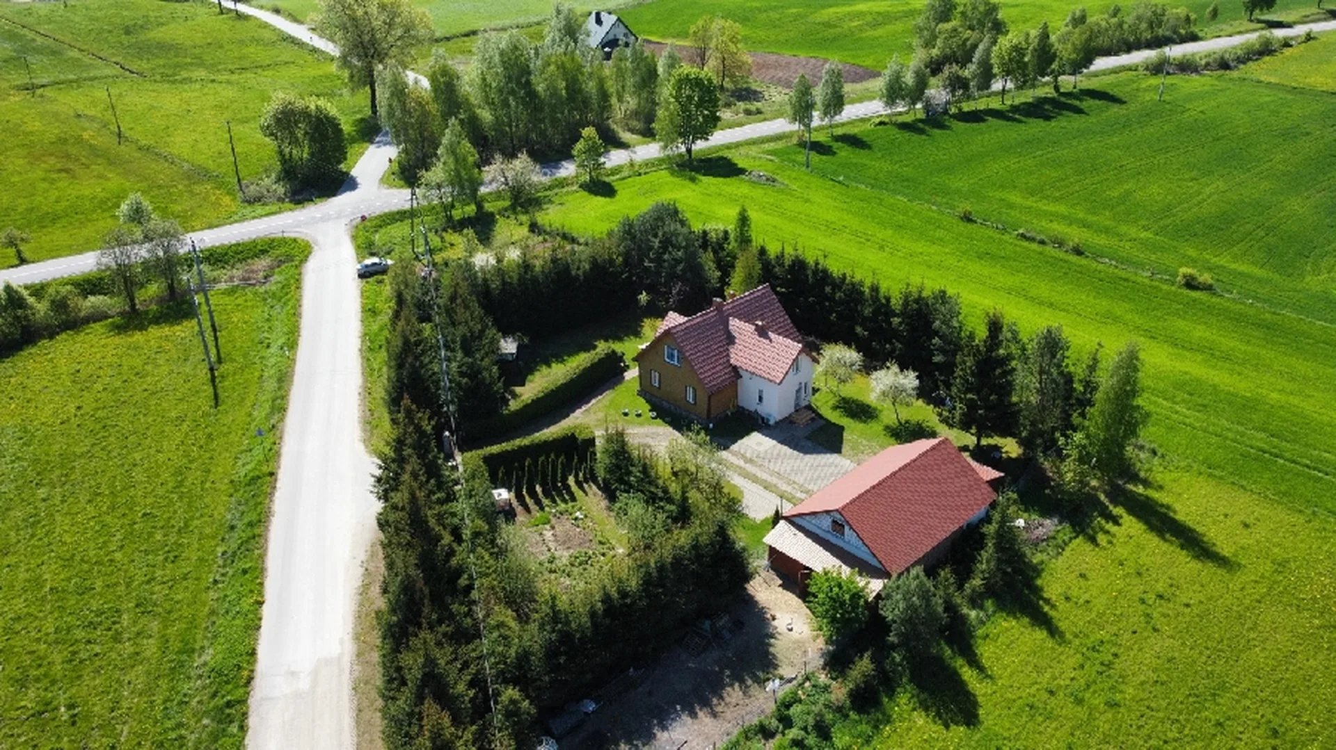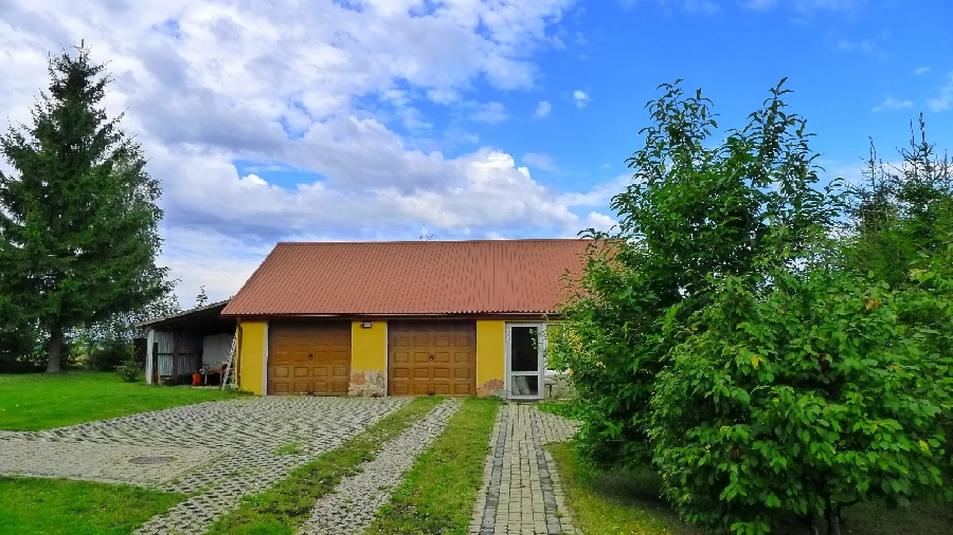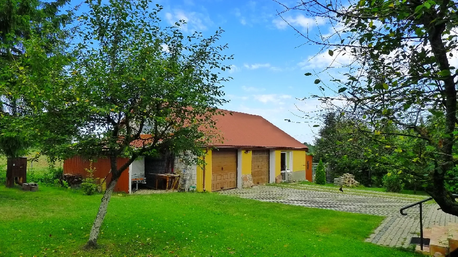 - Działka gruntu o powierzchni 1,0598 ha, w części gdzie występują zabudowania, ogrodzona. Poza budynkiem mieszkalnym, na działce znajduje się budynek gospodarczy, wykorzystywany jako garaż dwustanowiskowy oraz zostało wygospodarowane dodatkowe pomieszczenie z oddzielnym wejściem, mogące służyć jako biuro/gabinet.