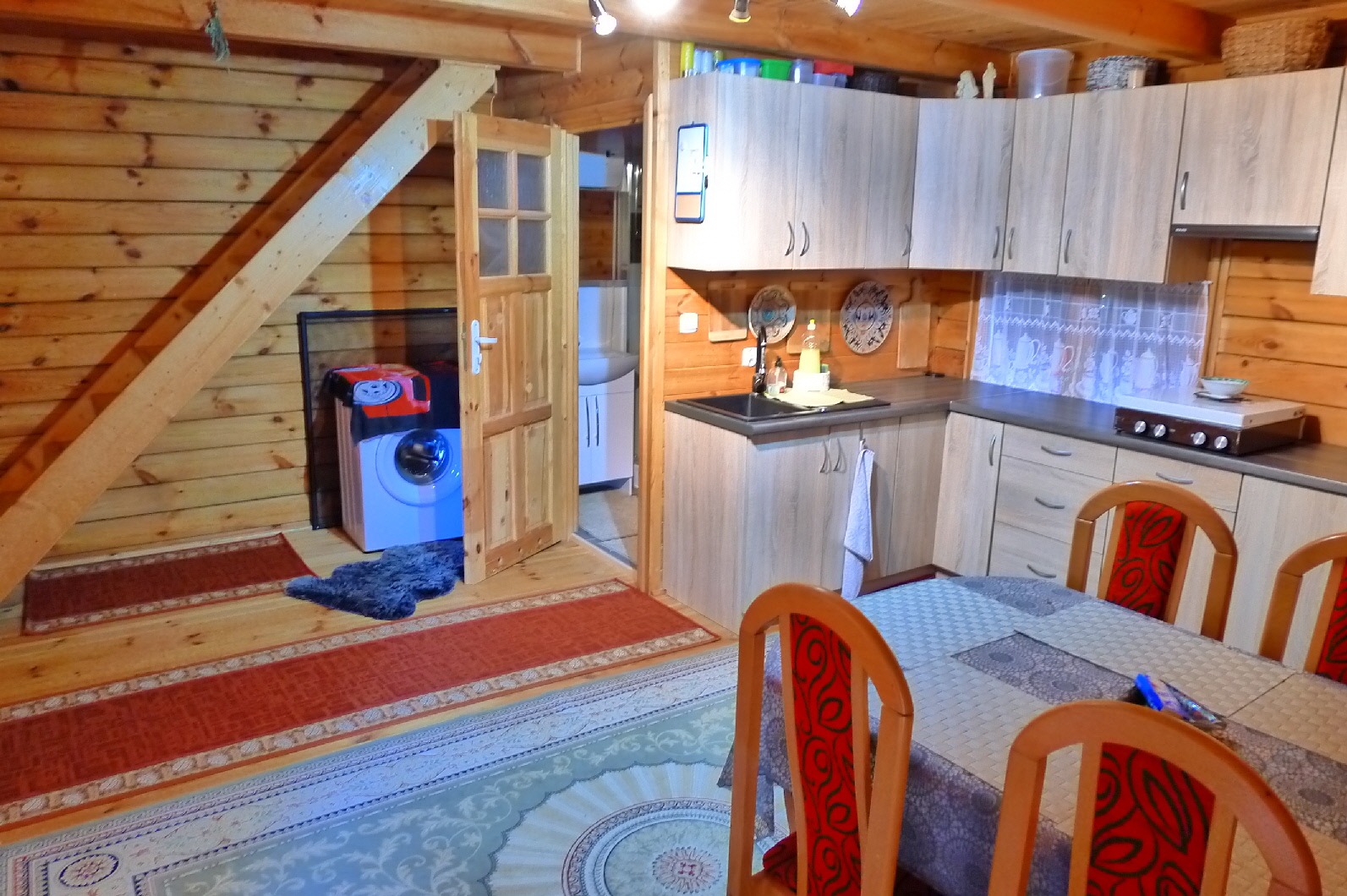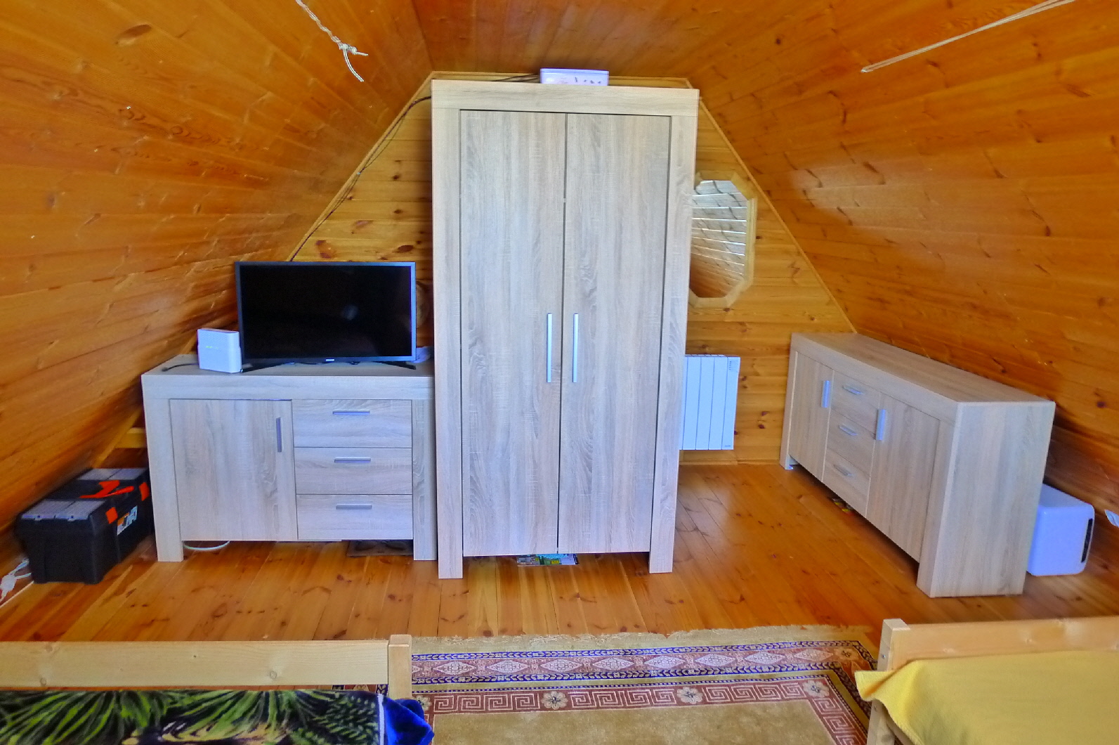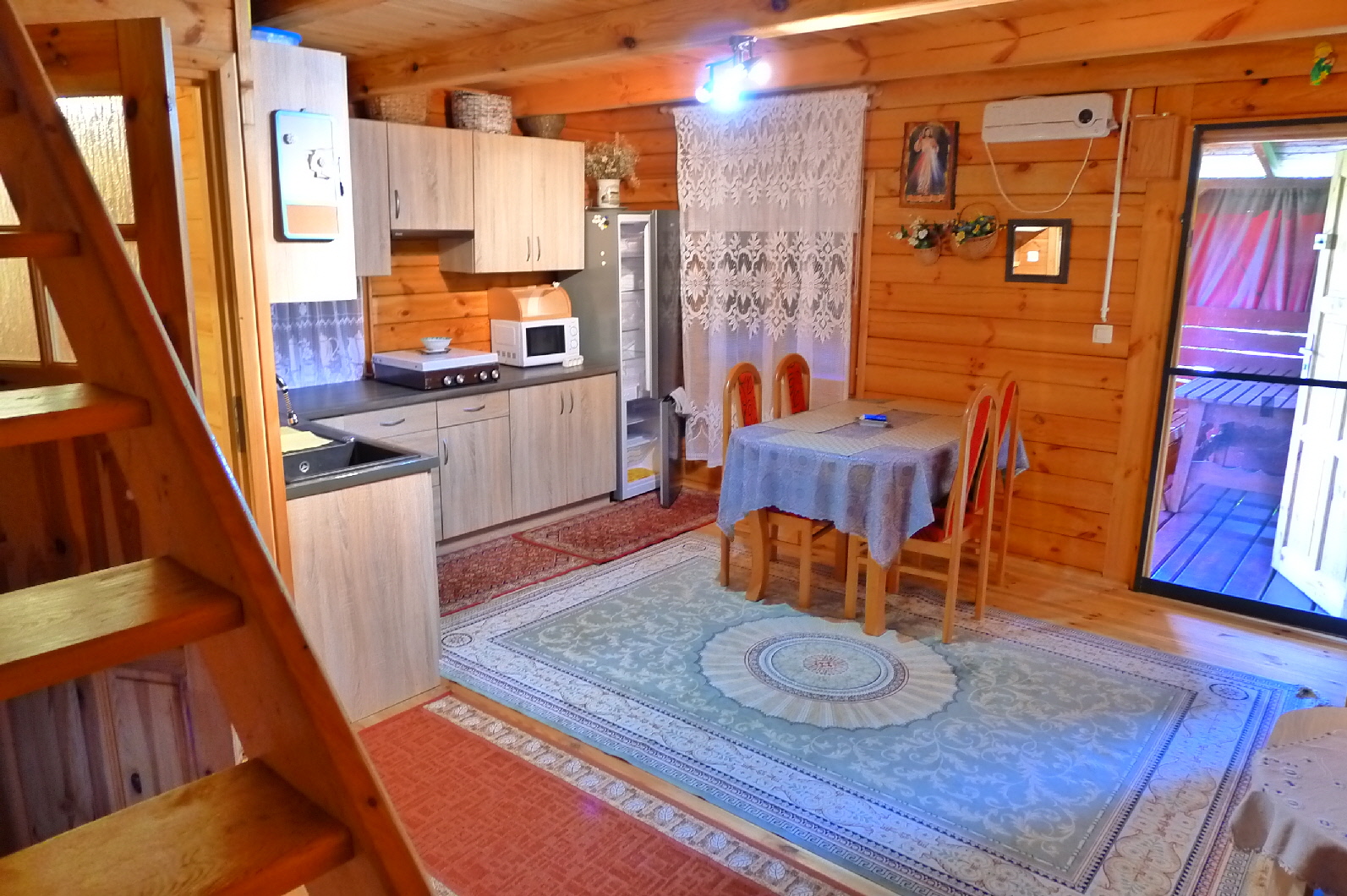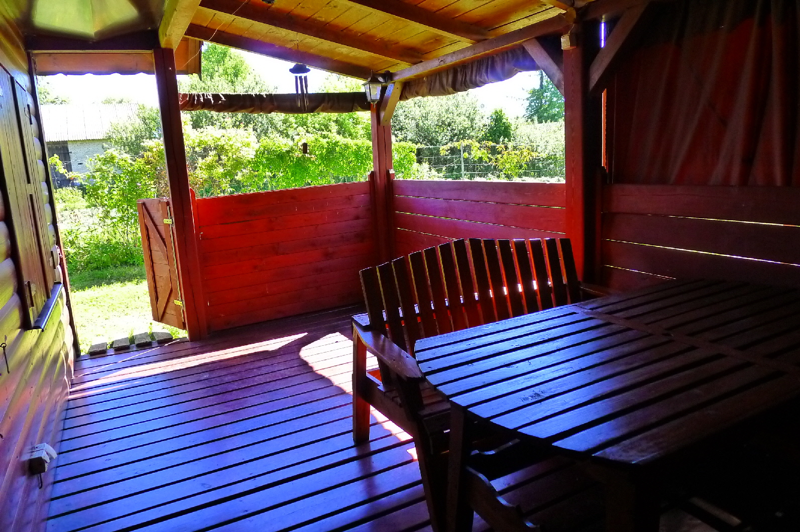 - Konstrukcja budynku to bal o średnicy 7 cm, wełna docieplająca oraz deska szalówkowa.