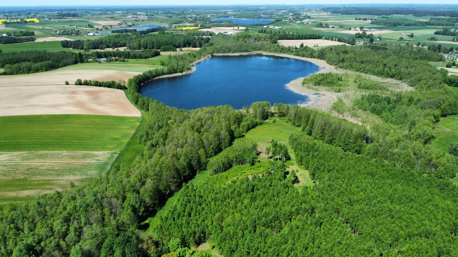 - Przy brzegu jeziora teren zalesiony.