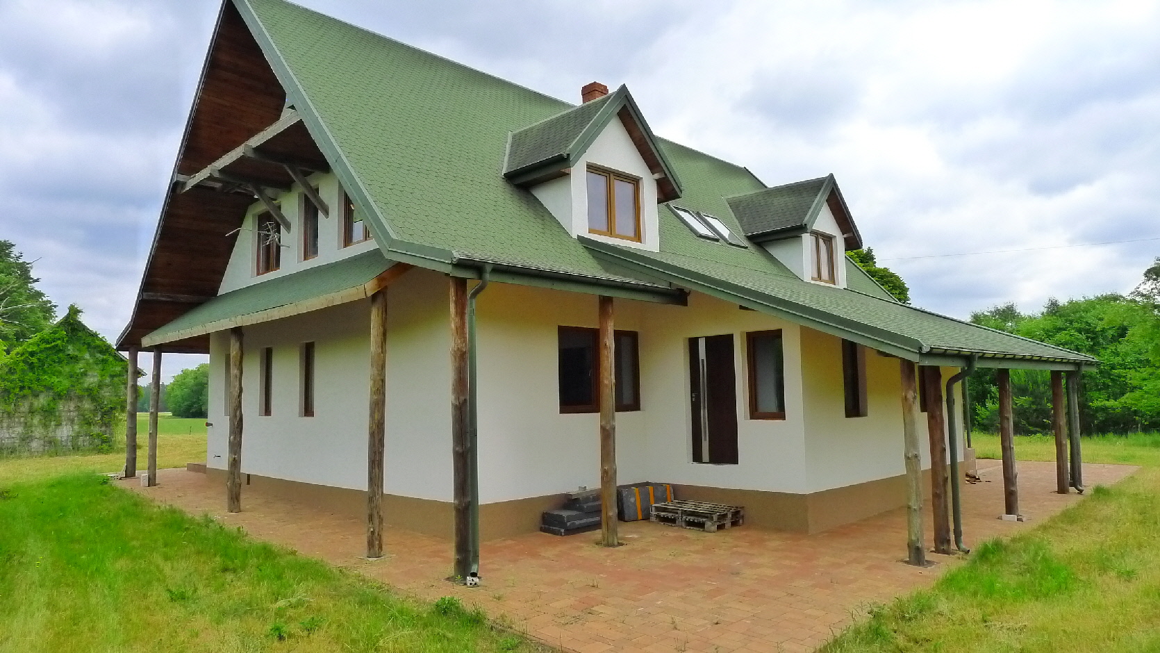 - Dom posadowiony 50 m od szosy (gwarancja ciszy i spokoju;